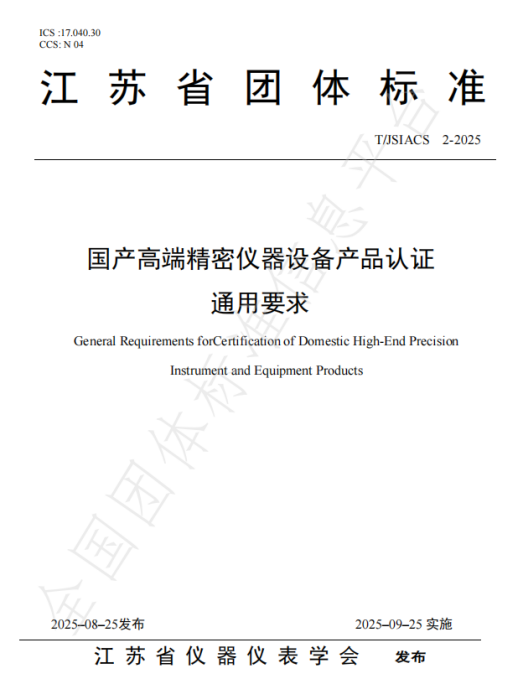 近日,江蘇省儀器儀表學會正式批準發(fā)布團體標準《國產高端精密儀器設備產品認證通用要求》(標準編號:T/JSIACS 2 - 2025)。該標準嚴格依據(jù)《江蘇省儀器儀表學會標準管理辦法(試行)》制定,圍繞國產高端精密儀器設備產品認證,在基本要求、國產化要求、品質屬性等關鍵維度作出明確規(guī)范,適用于國產高端精密儀器設備產品的通用認證場景。
